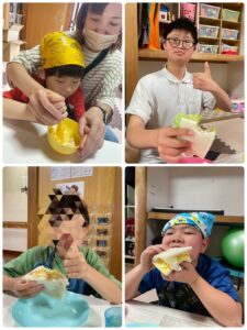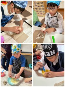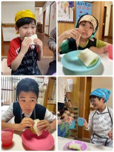 おやつにみんなでサンドウィッチをつくりました〜!たまごの殻をむいたり具材を混ぜたりして、とてもおいしそうにできていましたよ〜🥪