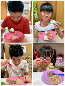 おやつにみんなでわらび餅をつくりました〜!上手に丸めて美味しそうにできていました😋