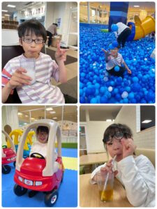 遊びに来ていた初対面のお友達とおままごとなどもしていましたよ〜✌️お昼ご飯はサイゼリヤに行きました〜🍕