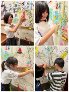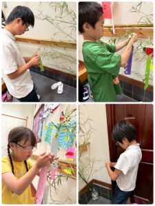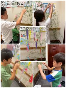 短冊に願い事を書き笹に吊るしました✌️ 飾りつけ作りを手伝ってくれたお友達もいましたよ〜😊 みんなの願いが叶いますように🙏